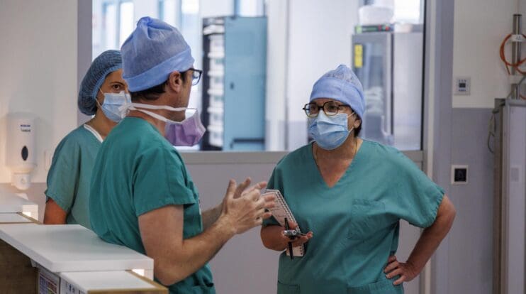 Le jour de l’intervention, les différents acteurs du bloc opératoire vous prennent en charge (l’équipe anesthésique vous préparera pour l’intervention puis le chirurgien et les infirmières de bloc opératoire interviendront).